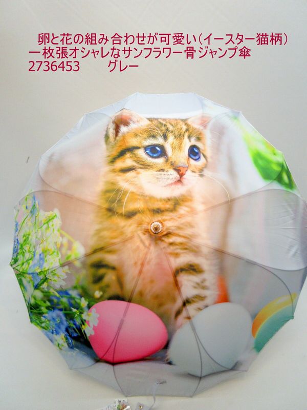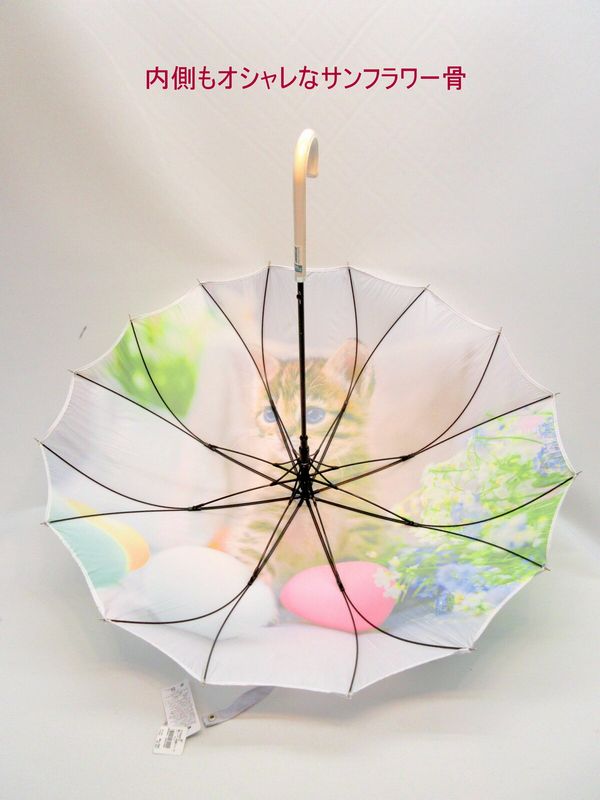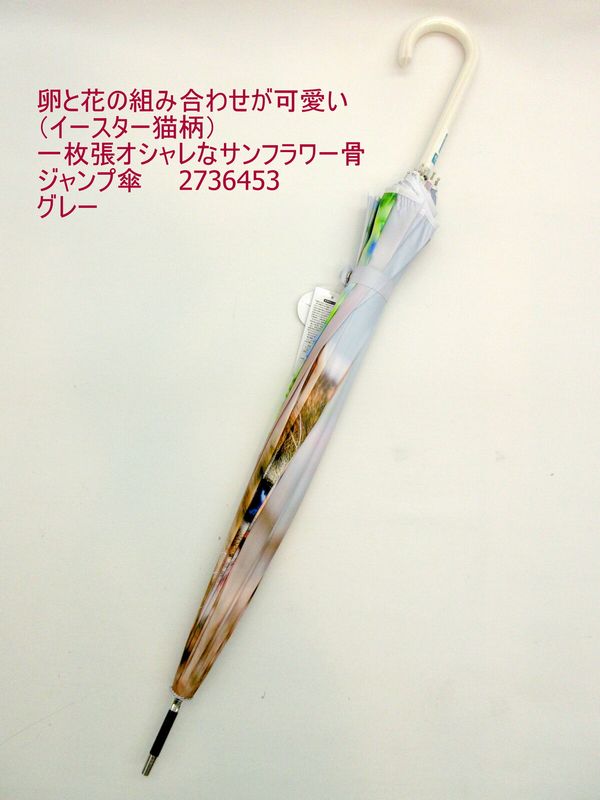 雨傘 傘 ファッション小物 レディースファッション 長傘 婦人 イースター猫柄 一枚張り オシャレ サンフラワー骨 ジャンプ傘 シルエット