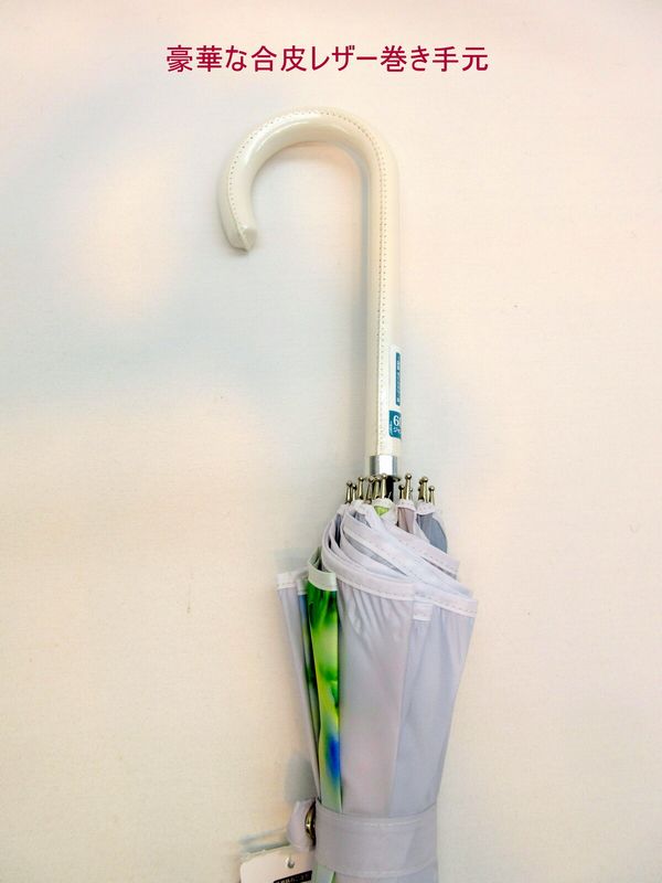 一枚張りだから雨漏りの心配を軽減し、一枚張りだからできる柄の途切れないデザイン性の高い雨傘です。