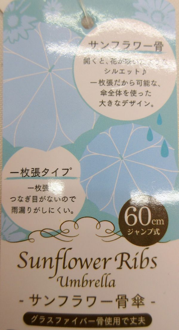 開くと花が咲いたようなシルエットの人気のサンフラワー骨を使用したジャンプ雨傘です。枝分かれ式の16本骨サンフラワー骨はその名の通り花のようで内側もオシャレです。