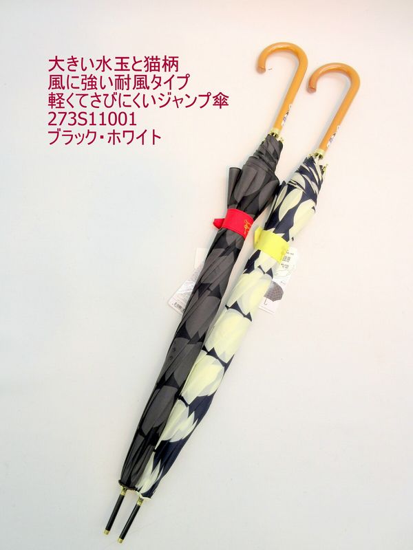 | 風に強くて丈夫な耐風骨使用タイプのジャンプ雨傘です。可愛らしい大きい水玉と猫柄。ネームバンドは金糸の刺繍&肉球スナップボタン付き。 軽くて錆にくいグラスファイバー骨使用のオシャレで可愛いジャンプ雨傘です。 |