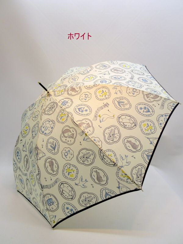雨傘 傘 ファッション小物 レディースファッション 長傘 婦人 楽器と動物たち柄 風に強い 耐風タイプ 軽くてさびにくい ジャンプ傘 【送料無料】