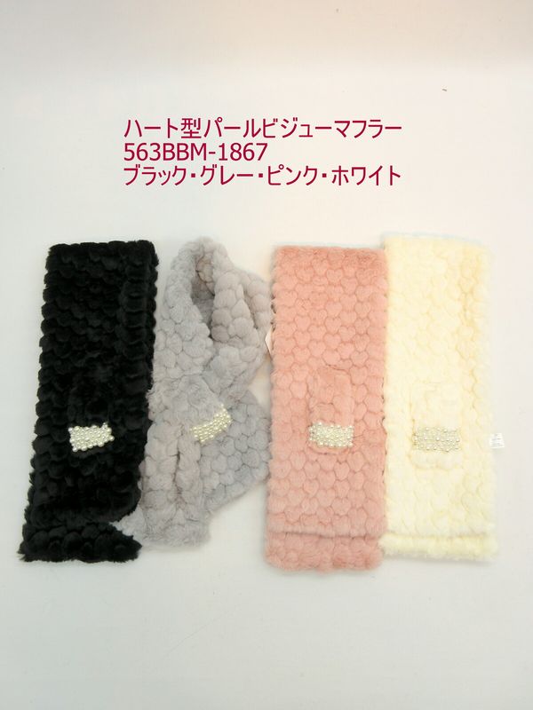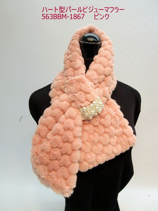 マフラー ファッション小物 レディースファッション ハート型 ファー パール ビジューマフラー ひとつひとつがハート型 キュート 【送料無料】