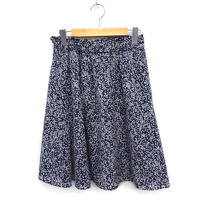 【中古】テチチ Te chichi 柄 フレア スカート ひざ丈 M ネイビー 紺 /FT16 レディース