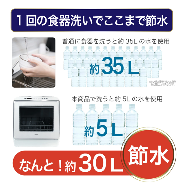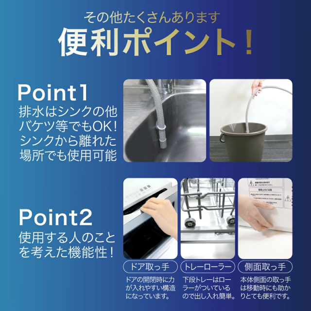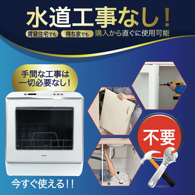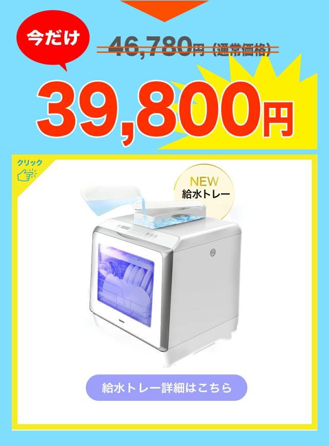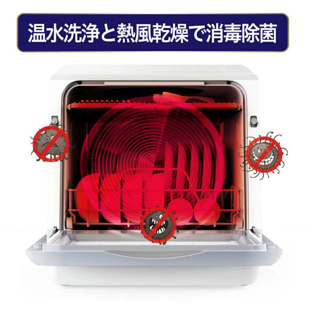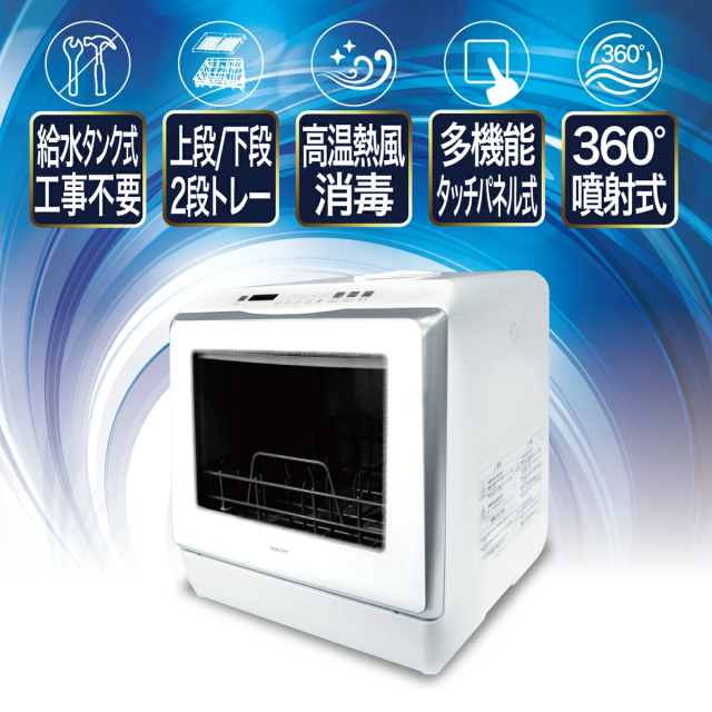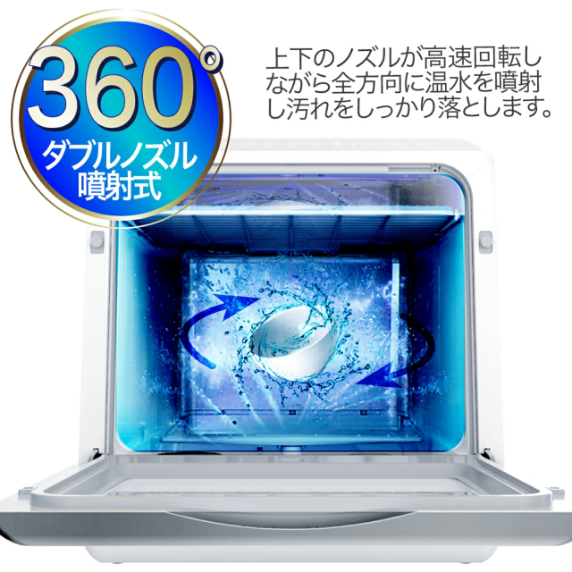 取付け工事不要の人気食洗器がUV機能搭載してさらにパワーアップしました。 上下に搭載の360度回転する噴射ノズルでこびりついた頑固な汚れを強力洗浄