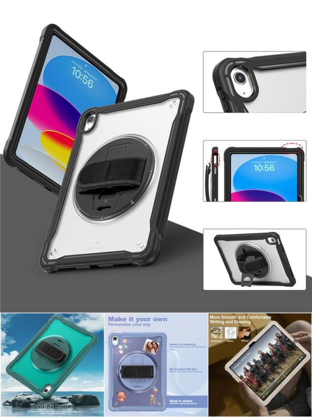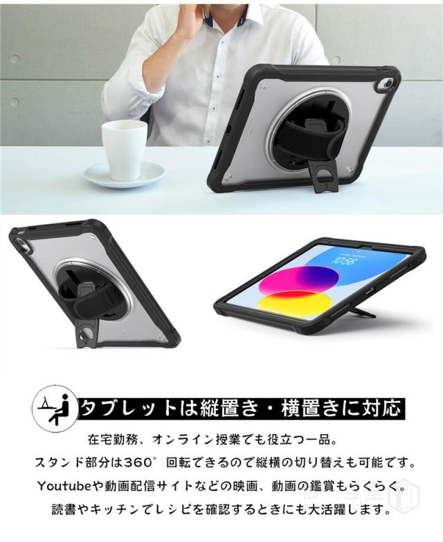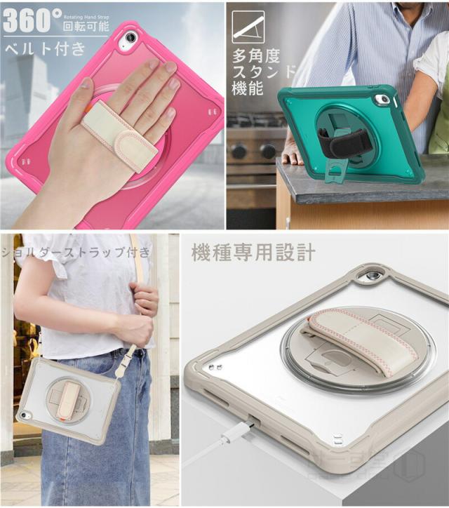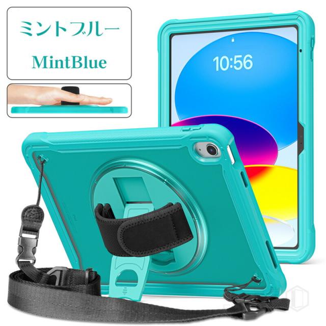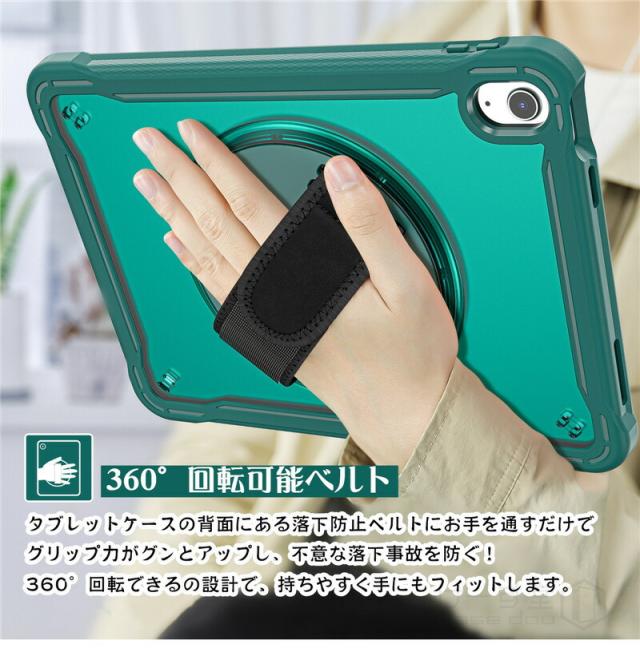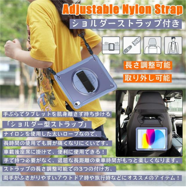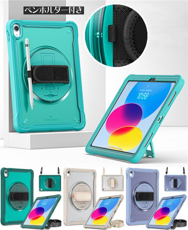 iPad 第10世代 ケース 2022 ショルダー タイプ 10.9インチ タフケース ショルダーストラップ付き 縦置き/横置きスタンド ipad 肩掛け ケース iPad 第10世代 2022年型 10.9 インチ ケース 回転式ハンドストラップ ハンドベルト 頑丈 耐衝撃 タブレット ケース 子供 キッズ
