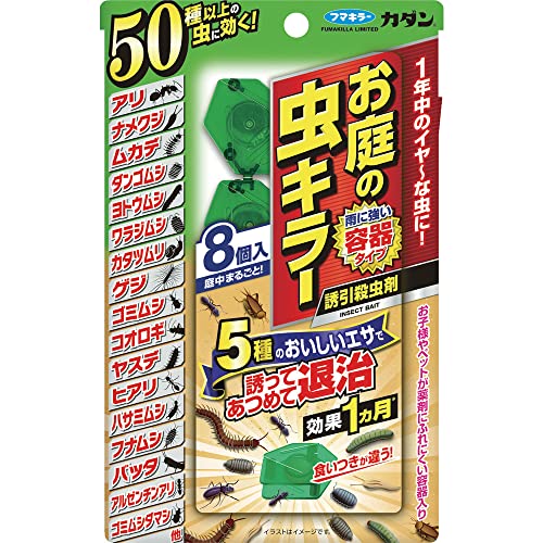 ・お庭に現れる害虫は季節や地域によって本当に様々ですが、カダンお庭の虫キラー誘引殺虫剤は、50種類以上の害虫に効果を発揮。害虫が好む5種類のおいしいエサをブレンドしているので、様々な害虫を強力に引き寄せませす。