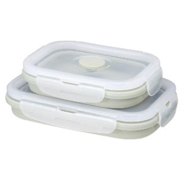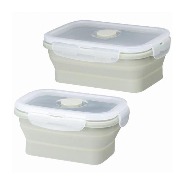 たたんでコンパクトに収納可能なシリコン保存容器セット。冷凍冷蔵、電子レンジ可と幅広くご使用頂け、アウトドアにも便利な保存容器です。