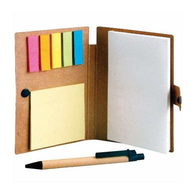 15.4×10.6×1cmメモ用紙付本体1冊・再生クラフト紙、再生紙・ふせん(大)1個・ふせん(小)5個・黒ボールペン1本・ABS樹脂・[中国製]