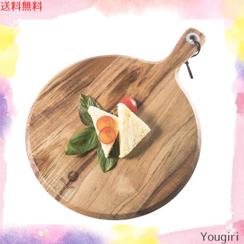 まな板 丸い 小葉アカシア木製 木のまないた カッティングボード ピザボード キッチン用まないた 取っ手付き 天然素材 軽量 環境に優しい