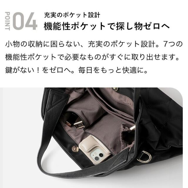ふっくらキルティングがおしゃれな高密度ナイロン生地を使用。