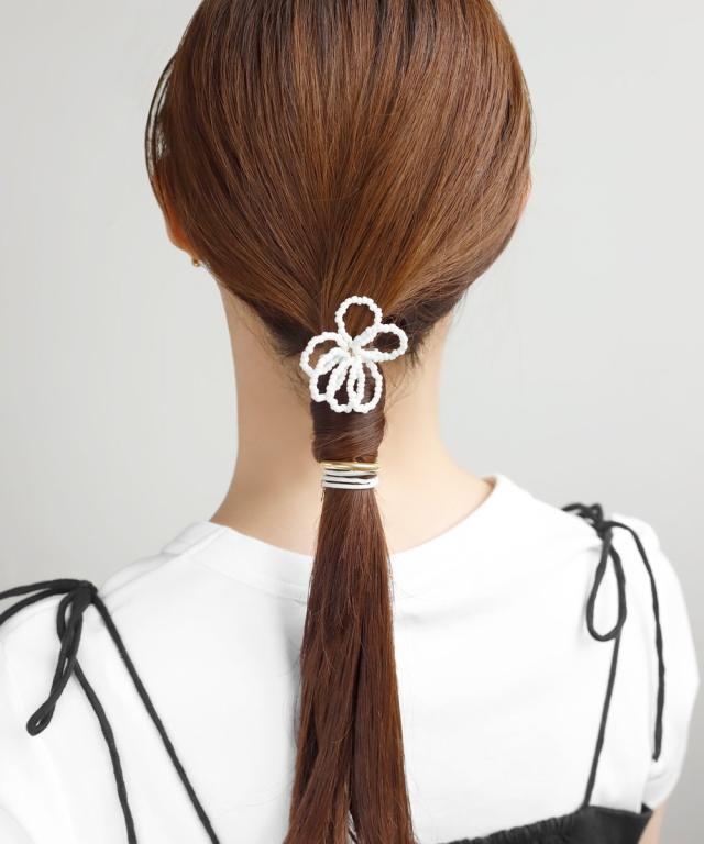 ビーズフラワー×メタルポニーフック[2個セット]
