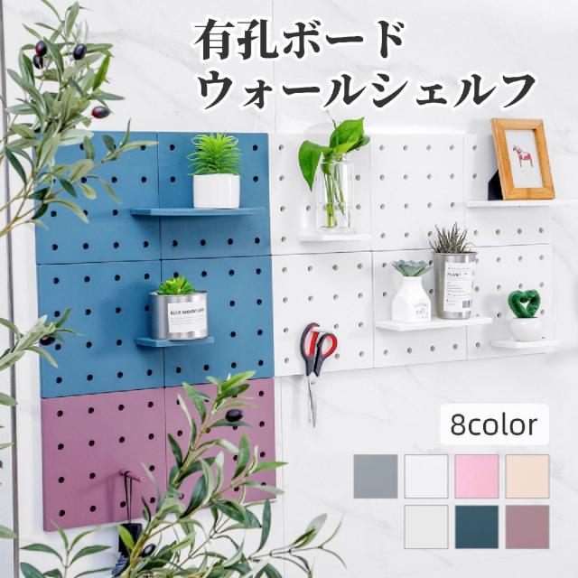 ウォールシェルフ ウォールラック 有孔ボード パンチングボード 正方形 四角 スクエア 貼り付け式 壁面収納 収納用品 ディスプ