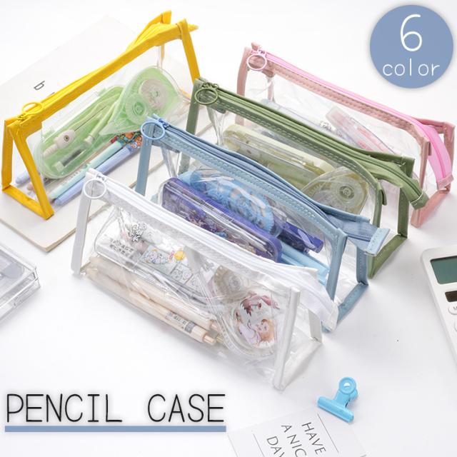 ペンケース 筆箱 学生 大人 子供 女の子 男の子 筆入れ 文房具 筆記用具入れ 小物入れ ポーチ 透明 クリアカラー ファスナ