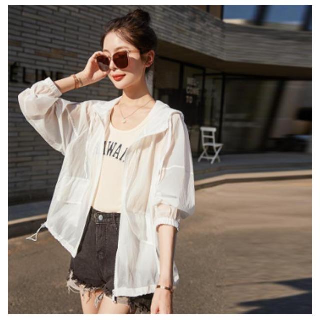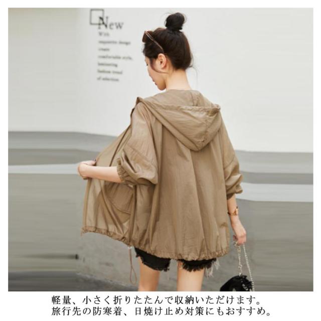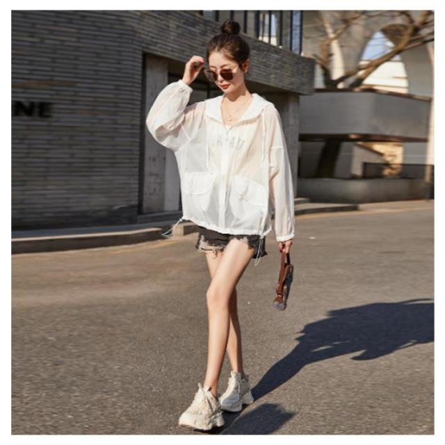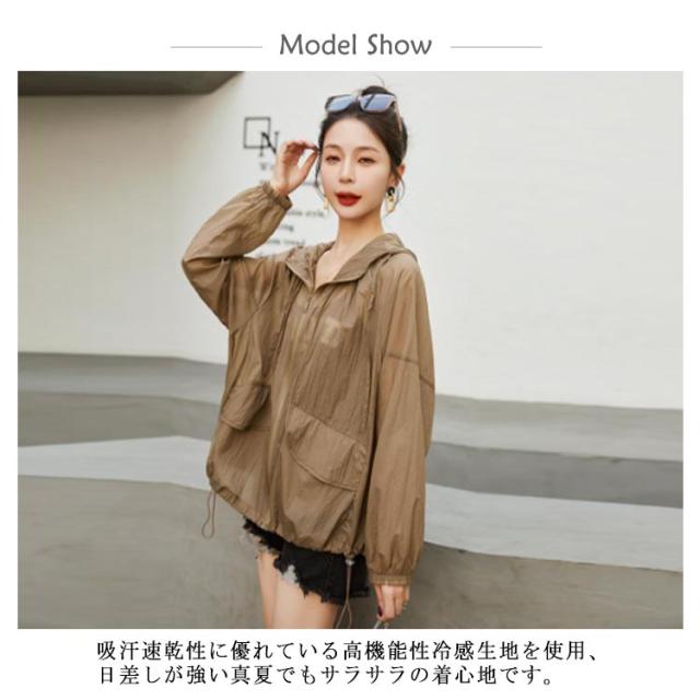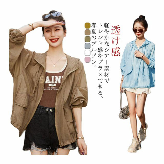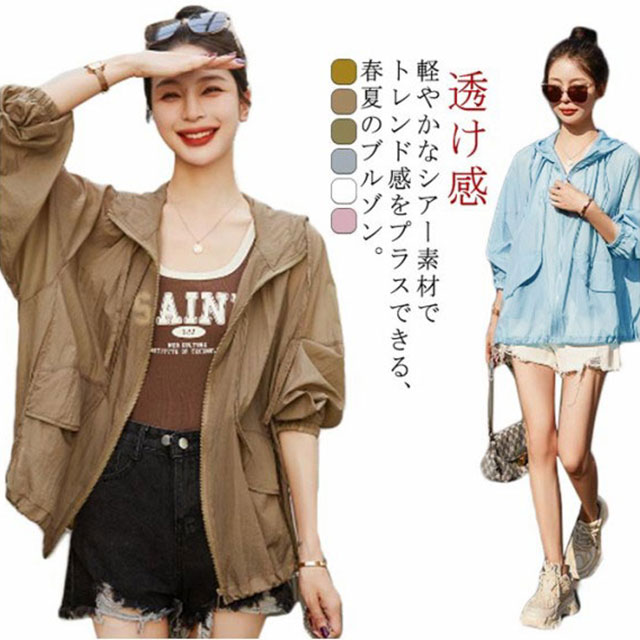 アウター UVカット 薄手 透け感 長袖 シアーブルゾン トップス UVパーカー パーカー フード付き 涼しい マウンテンパーカー シースルー 紫外線対策 UVカットパーカー ジャケット シアーパーカー アウター UVパーカー 冷房対策 大きいサイズ ゆったり 軽い 春