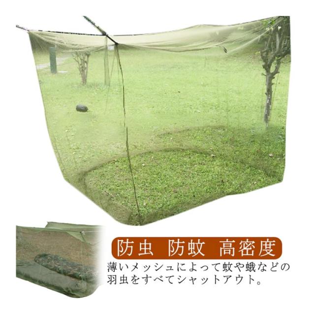 | 【防虫 防蚊対策】薄いメッシュによって蚊や蛾などの羽虫をすべてシャットアウト。虫の入れない安全エリアを作れば、女性や子どもも安心してキャンプを楽しめるはずです! 通気性がよく、蚊・蛾・蜂などの害虫を対策可能で、イヤな虫から身を守り、アウトドアで快適に過ごすためのモスキートネットです。 【高密度】モスキートネットは細かいメッシュがあり、高密度で蚊や虫などの侵入を効果的に防ぐことができます。 通気性抜群で 、防蚊虫はもちろん、安眠の促進にもつながります。 【使いやすい】木の枝にかけて吊るします。 【適用】キャンプ、旅行、ハイキング、天体観測など様々なアウトドア活動に最適! 災害発生時に蚊取り線香や蚊取器などの使えない場合にも役に立ちます。 | |