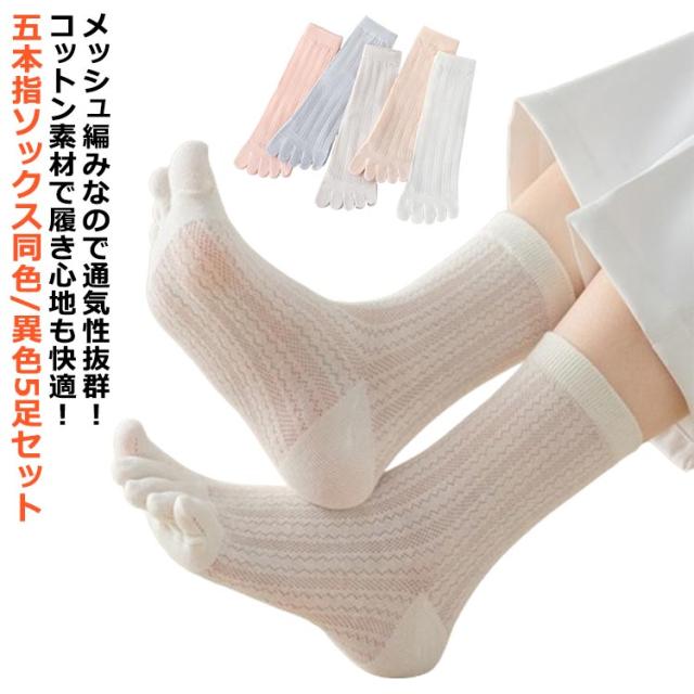 通気性抜群 薄手 クルーソックス 無地 吸汗 綿 メッシュ 五本指ソックス 足指 白 五本指靴下 レディース コットン 蒸れない 靴下 シンプル おしゃれ スニーカー 楽ちん 臭わない 同色/異色5足セット 汗取り 足 消臭 さらさら快適 可愛い 同色/異色5足セット ホワイト ピンク