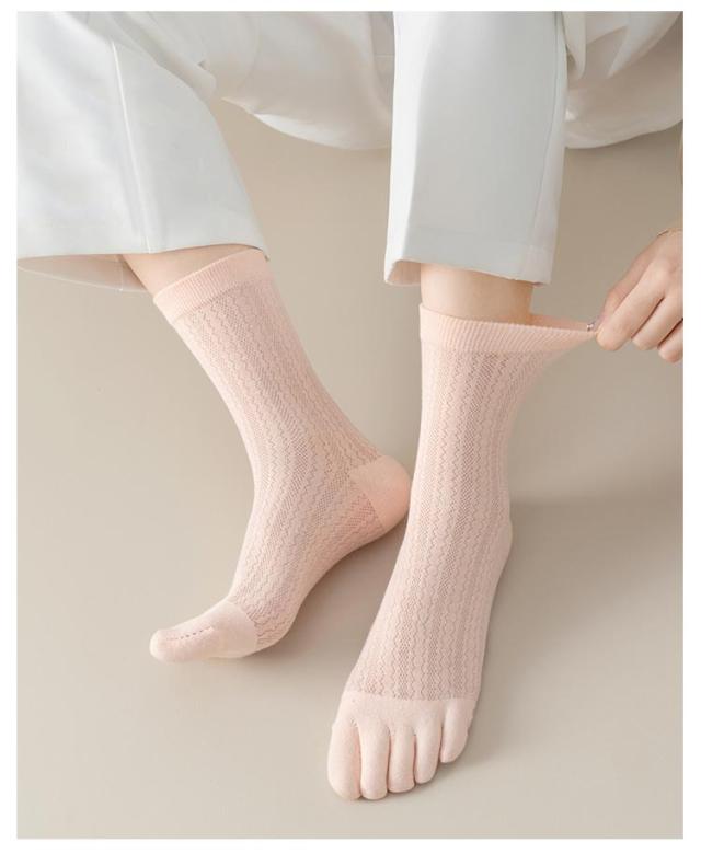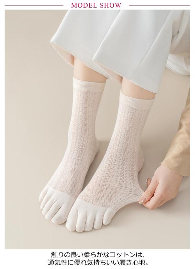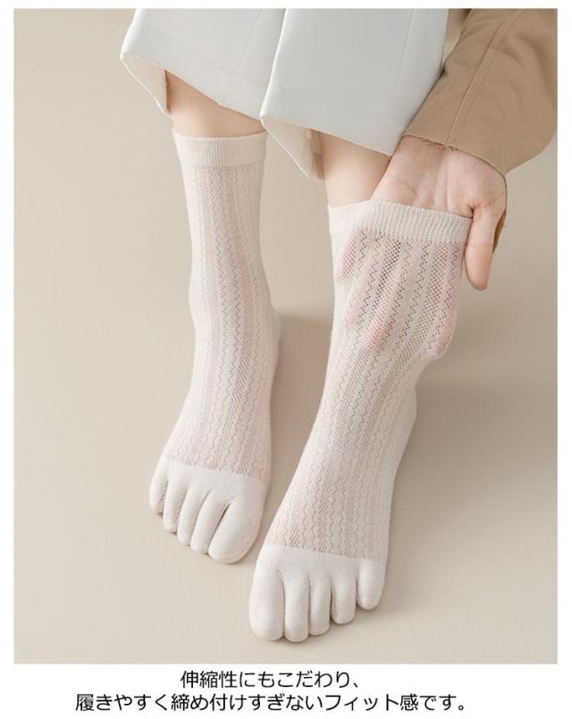 | メッシュ編みなので通気性抜群! コットン素材で履き心地も快適! 五本指ソックス 同色/異色5足セット 触りの良い柔らかなコットンは、通気性に優れ気持ちいい履き心地。 薄すぎず厚すぎない、適度な生地は季節を問わず快適にご着用いただけます。 伸縮性にもこだわり、履きやすく締め付けすぎないフィット感です。 | |