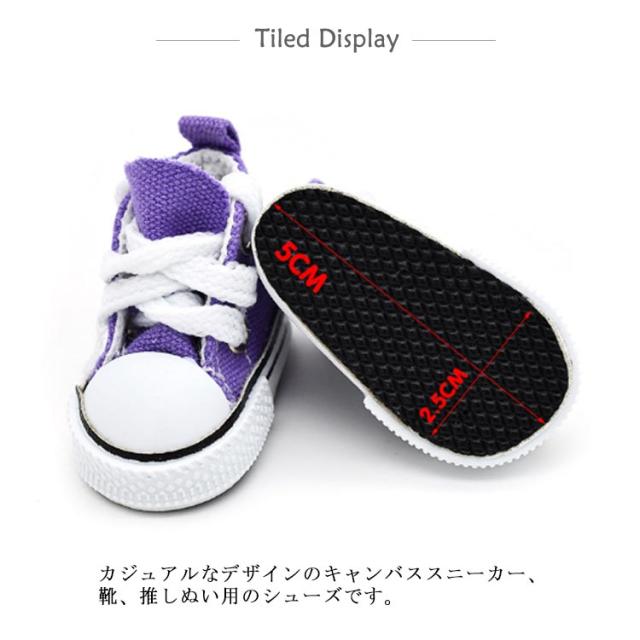 | ぬいぐるみ、推しぬい用に!カジュアルなデザインのキャンバススニーカー、靴、推しぬい用のシューズです。体長約20cmの人形に適したサイズ感です。 小さいけれど、ディテールがかわいい!カジュアルなキャンバススニーカーで、お気に入りの推しぬい、ぬいぐるみを、かわいく着せ替えしてあげましょう! ミニサイズのスニーカーは、そのままディスプレイしてもかわいい! | |