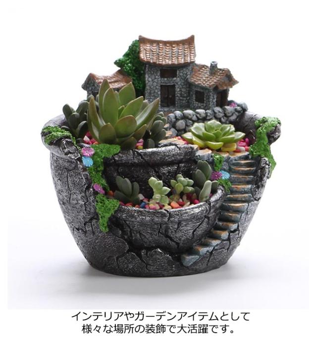 植木鉢 可愛い お城 プランター DIY ガーデン フラワーポット 鉢 大サイズ 寄せ植え 鉢植え 底穴付き ハウス プランター 観葉植物 民家 園芸用 多肉植物 セダム エケベリア サボテン 別荘 クラッスラ ハオルチア カランコエ ハオルチア