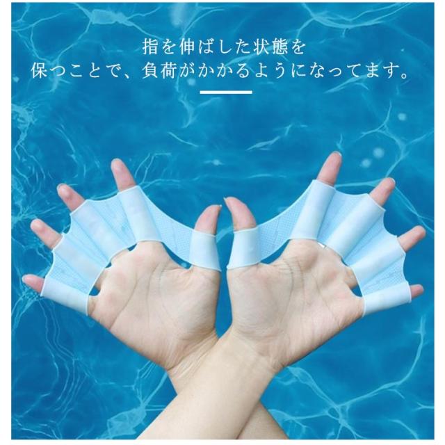 | スイミングの練習にオススメのパドルグローブです。 指を伸ばした状態を保つことで、負荷がかかるようになってます。 柔らかいシリコン素材を使用し、何度も再利用できます。 コンパクトなので、普段の持ち運びや収納に便利です。 | |