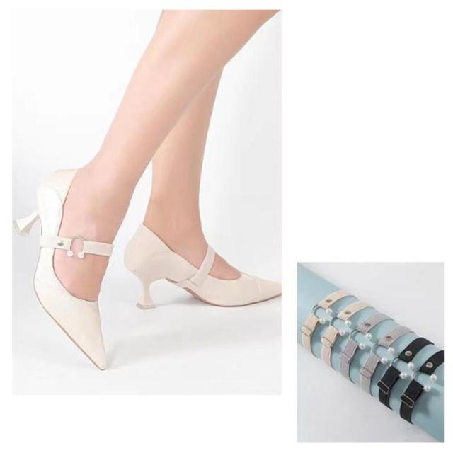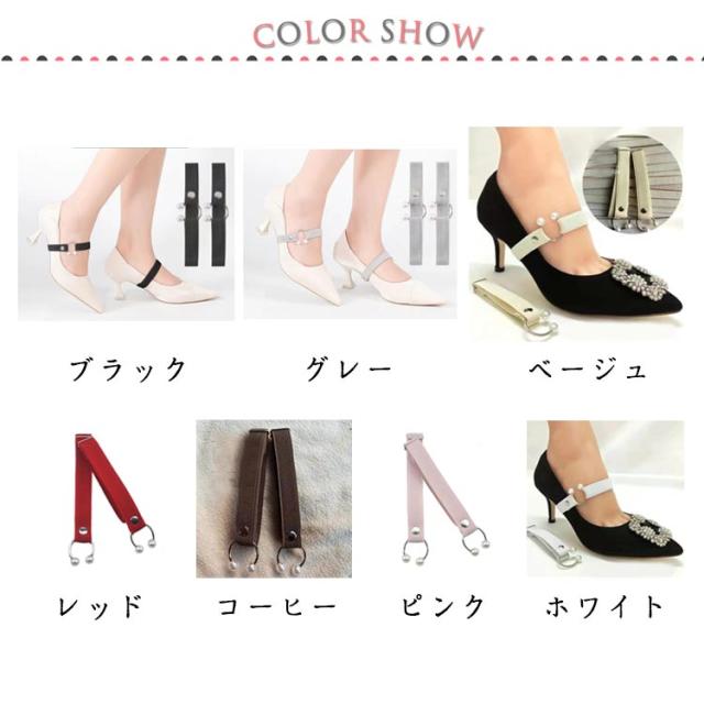 | パンプスの脱げが防止!靴を魅力的にしましょう! 引掛け金具を使用しているため脱着が簡単に出来ます。 伸縮性の良い素材を使用しており、太い足でも使用可能です。 真珠の装飾があしらわれており、足元のアクセントとしても可愛いです。 ベルト部分は調節可能なので、ご自身の足や靴によってサイズ調整が可能です。 上品なシンプルデザインはいろんなコーデになじみやすく、幅広い場合で活躍できる。 | |
