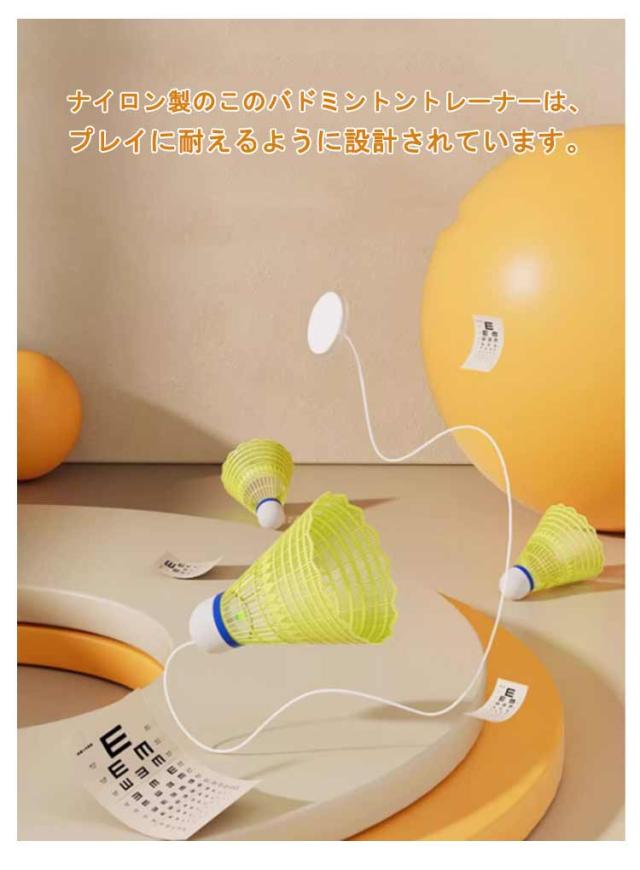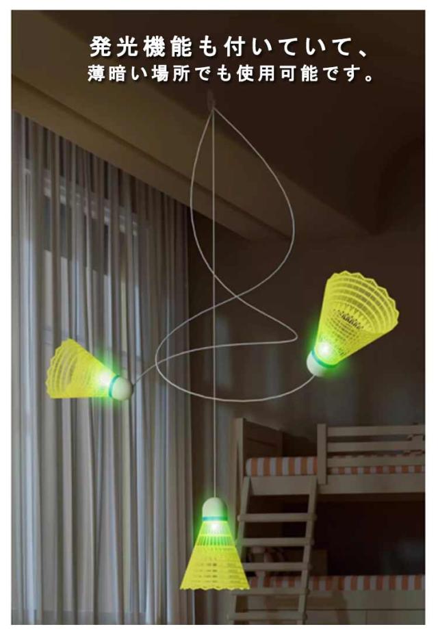 | 3個セット光る室内バドミントン。 自宅で楽しく楽しくトレーニングするのに最適です。 ナイロン製のこのバドミントントレーナーは、プレイに耐えるように設計されています。 傷つきにくくパワーも強いのでパワーや技術の向上に最適です。 バドミントン自己練習トレーナーには跡のないステッカーが付属しており、簡単に取り付けられます。 高さも調節可能です。 壁を傷つけずにしっかりと押すだけです。どこにでも設置できるので多用途に使えて便利です。 発光機能も付いていて、薄暗い場所でも使用可能です。 | |