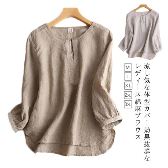 大人女性 長袖 リネン レディース ブラウス 薄手 リネン シャツブラウス 綿麻ブラウス 夏 ナチュラル きれいめ リネンシャツ トップス 涼しい ゆったり 体型カバー 無地 シャツ 着心地 柔らかい 可愛い シンプル