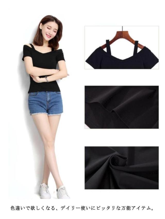 tシャツ トップス 肩出し レディース オフショル半袖Tシャツ オフショル半袖Tシャツ オフショルダー 肩開き コンパクト 夏服 白 黒