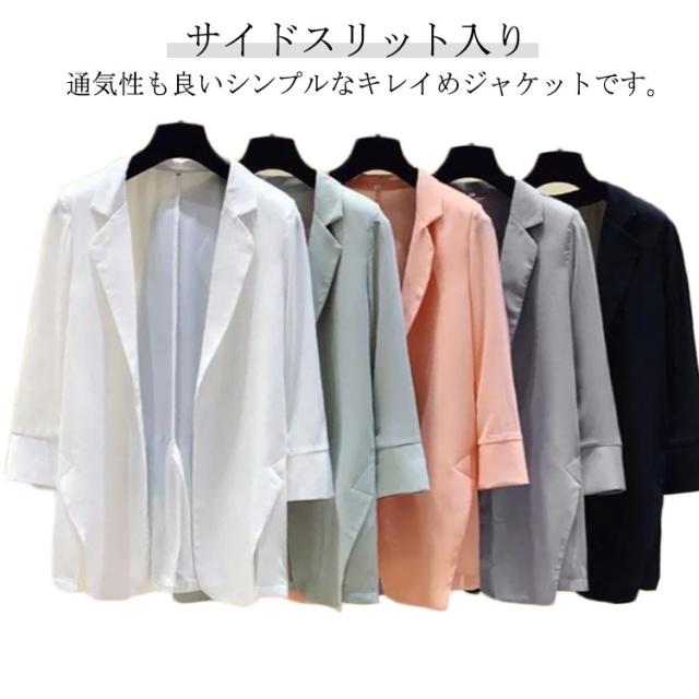 サマージャケット 黒 薄手 通勤 夏 薄手 レディース サマージャケット レディース 羽織 サマージャケット レディースジャケット スリット 接触冷感 7分袖 カジュアルジャケット ジャケット 上着 ジャケット オフィス オフィスジャケット 白