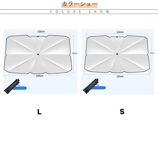 | 【車用傘型サンシェード】【UPF50+、紫外線を99.9%遮蔽】【2サイズ】 【UPF50+、紫外線を99.9%遮蔽】特殊コーティング加工され、太陽の光を前面カットできる! 夏には、紫外線を防ぎ、車内の温度を下げることを目指します。 【展開する時はパッと開くだけ】傘の仕様で開いたり閉めたり、収納もとても便利!傘式で取り付け簡単! アルミ合金の10本骨とガラスファイバー製の骨先!丈夫な作りなので経年劣化しにくく、長い間使える! フロントガラスの形にピッタリフィットするシェープで周囲の隙間を最大限に減少、光線カット効率がさらにUP! 【収納袋付入れるだけで簡単収納】使い終わった後はサッと閉じて収納袋へ! 【便利と多用途】クルマ、トラック、SUV、バン、ミニバンなど、市場に出回っているほとんどのモデルに対応できる。 | |