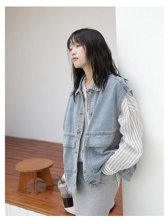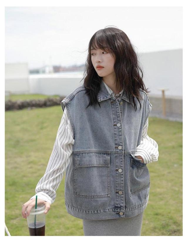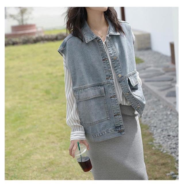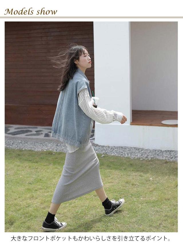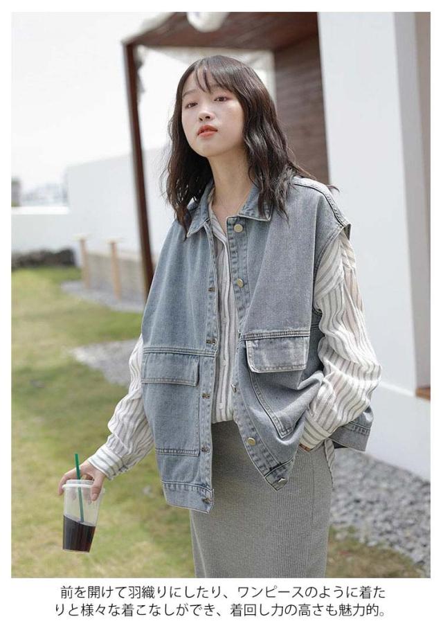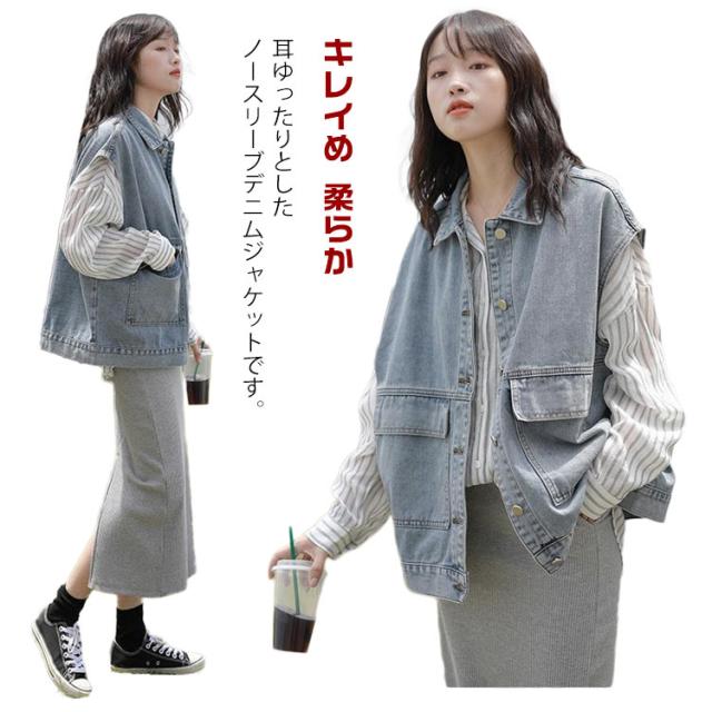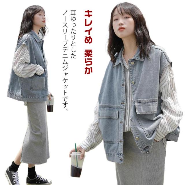 羽織り レディース デニムベスト ジーンズベスト ノースリーブ デニムベスト アウター トップス 大きいサイズ ゆったり ジーンズベスト ポケット付き カジュアル シンプル キレイめ