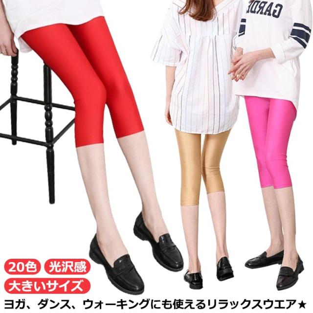| 20色 光沢感 大きいサイズ ヨガ、ダンス、ウォーキングにも使えるリラックスウエア★ スポーティな美光沢生地を使用して、華やかで旬なコーディネートが完成できる。 よ〜く伸びる素材だからフィット感があるのに楽ちんな穿き心地でとっても動きやすい。 光沢のあるカラーと伸びる素材で体にフィットし足を細く見せてくれます。 ウエスト周りもだぶつかないのでレイヤードコーデしてもごわつきません。 | |
