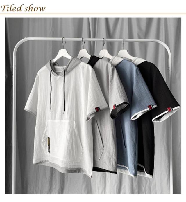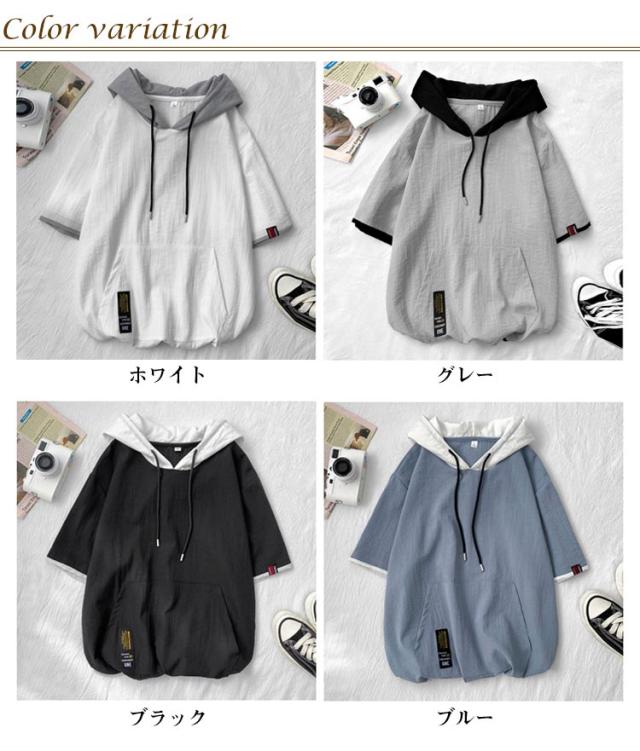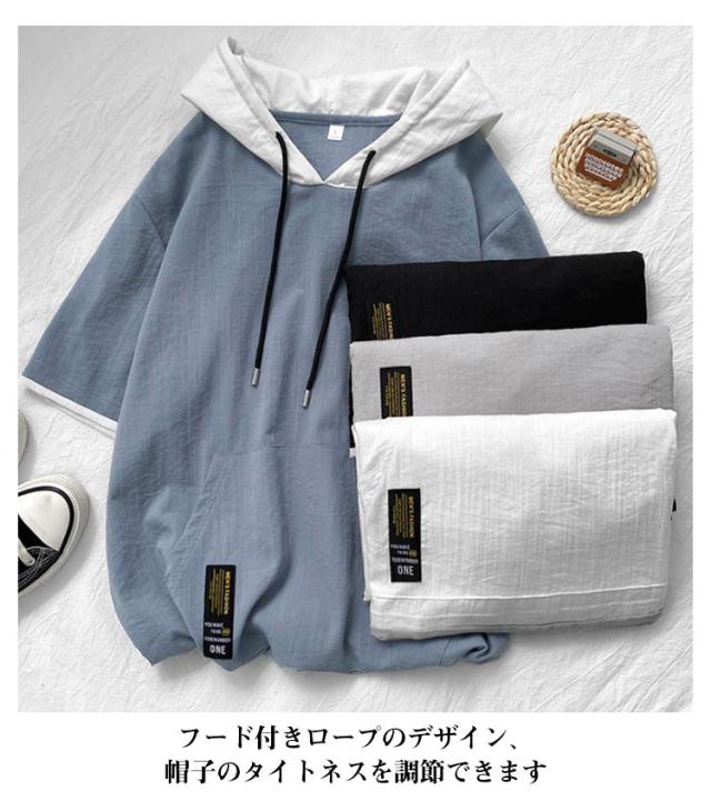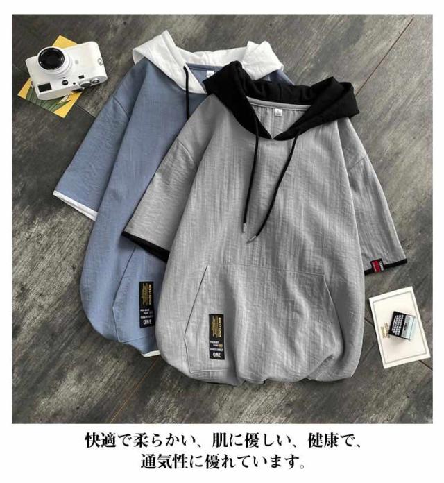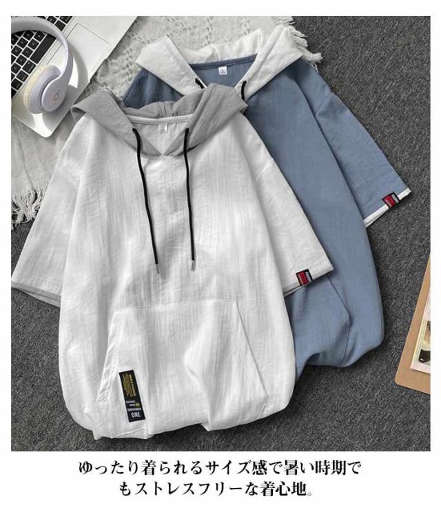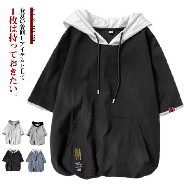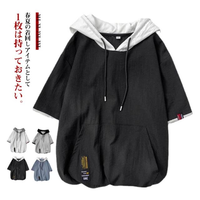 パーカー カジュアル メンズ tシャツ 半袖パーカー 薄手 涼しい パーカー 大きいサイズ 五分袖 トップス おしゃれ ゆったり シンプル プルオーバーパーカー 春夏 ルームウェア 夏用 韓国