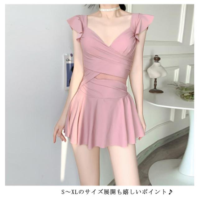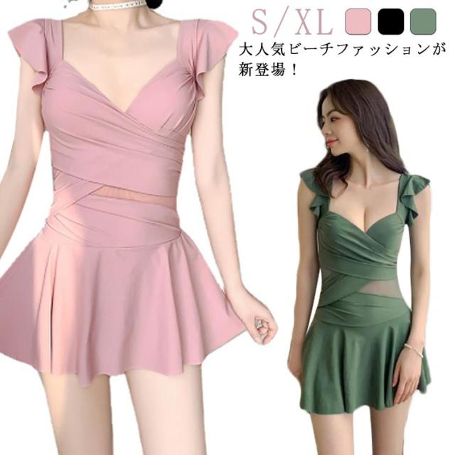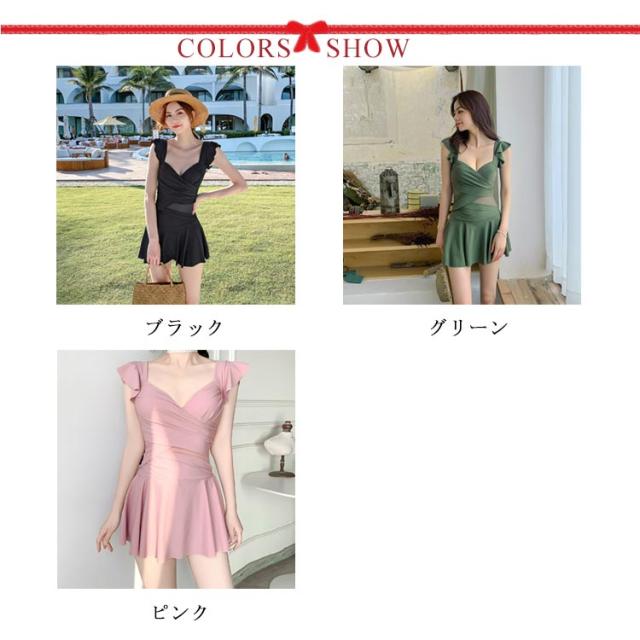 水着インナー ワンピース水着 水着 カシュクール ななめ巻き 紫外線防止対策 水着 シースルー グリーン 黒 ピンク リゾート夏 アシンメトリー プール ビーチ タンキニ 海 スイムウェア 韓国 20代 30代