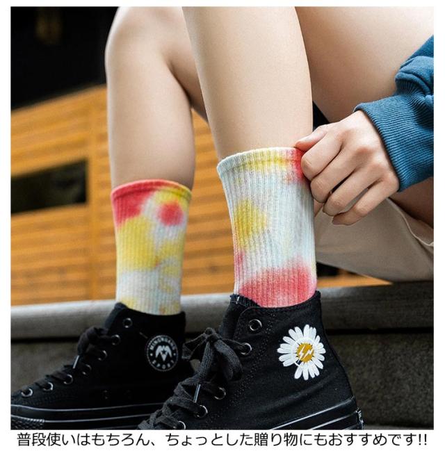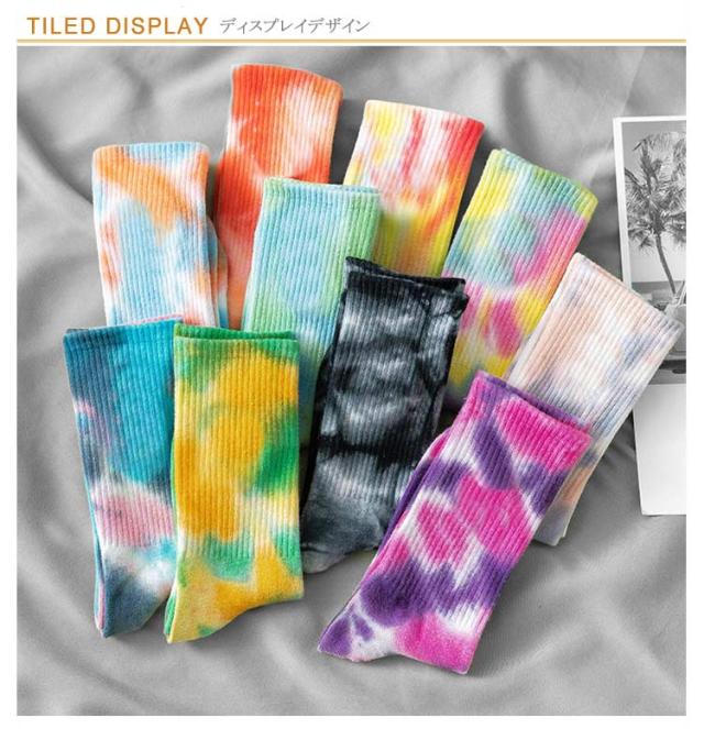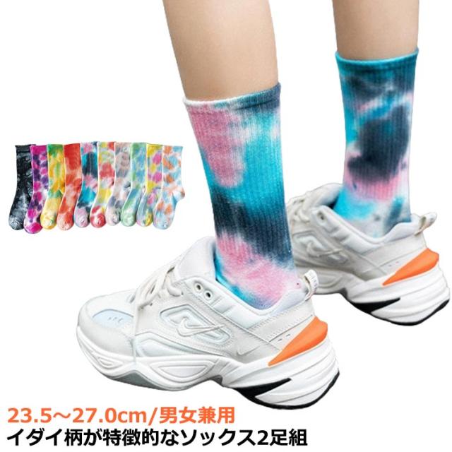 タイダイ ソックス レディース メンズ ソックス 2足セット タイダイ柄 靴下 綿 コットン 23.5〜27.0cm/男女兼用