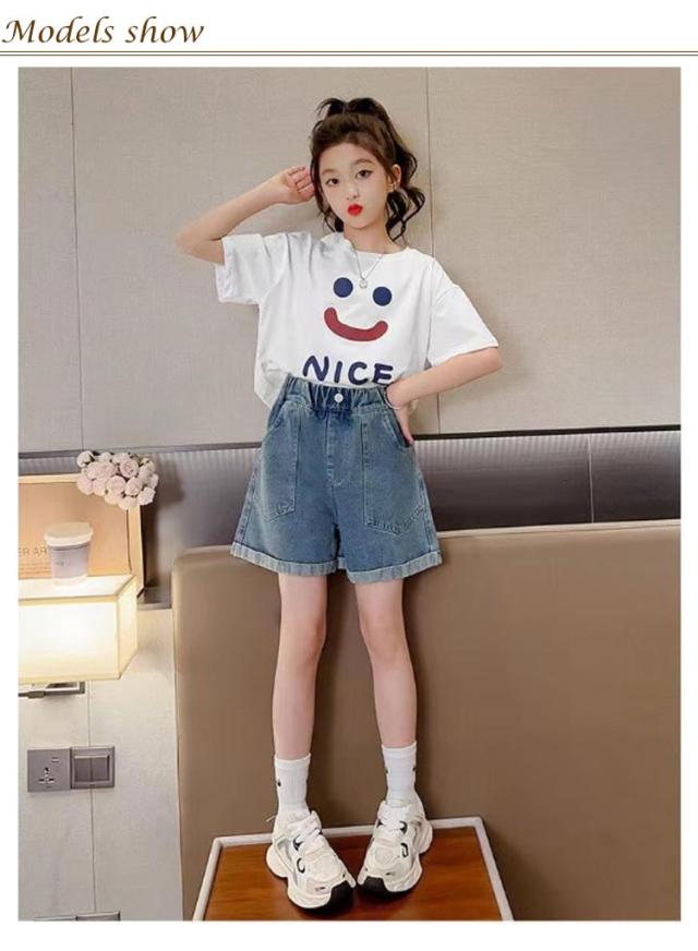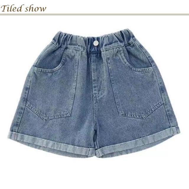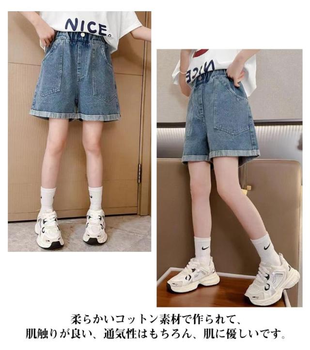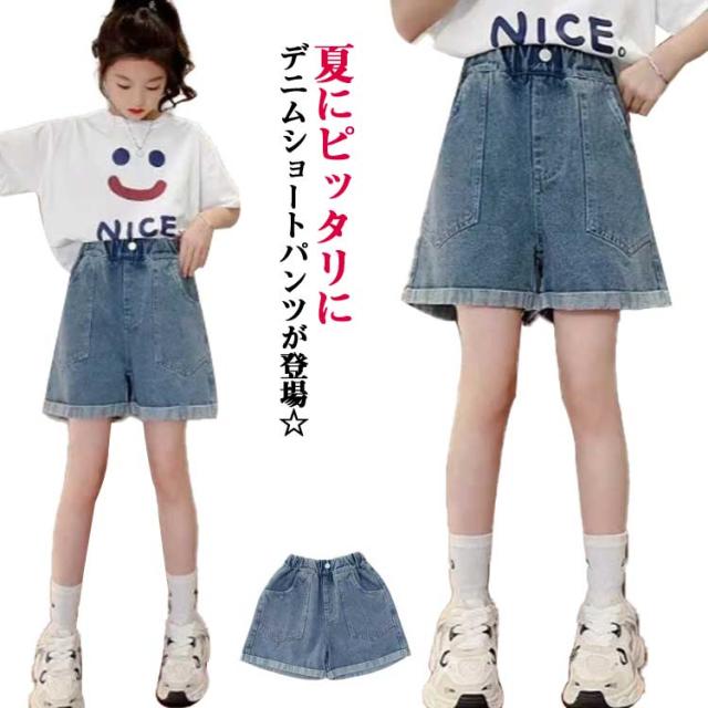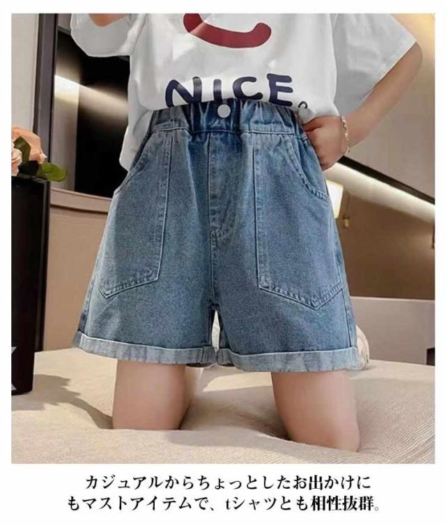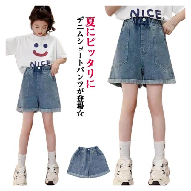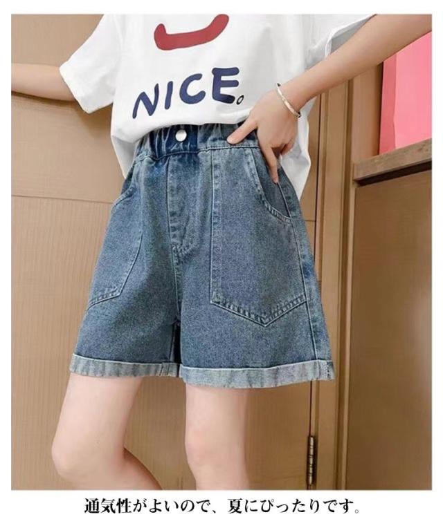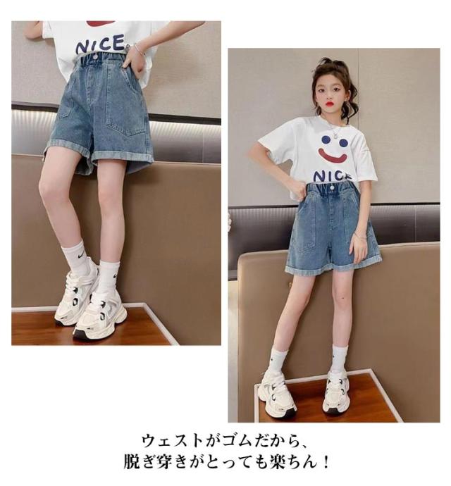 ジュニア 子ども服 ジーパン キッズ 衣装 ショートパンツ ウエストゴム ガールズ 半ズボン 夏 こども服 ダンス デニムパンツ 短パン キッズ 無地 ポケット付き 通気性 かわいい シンプル ゆったり