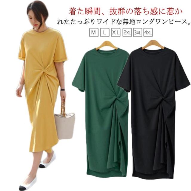 Tシャツワンピース レディース 半袖 春 夏 春夏 ロングワンピ 半袖ワンピース ロングTシャツ オーバーサイズ プリントTシャツ 春 秋 無地Tシャツ ドロップショルダー クルーネック 半袖Tシャツ ロング ワンピース 体型カバー カットソー 無地 シンプル 送料無料