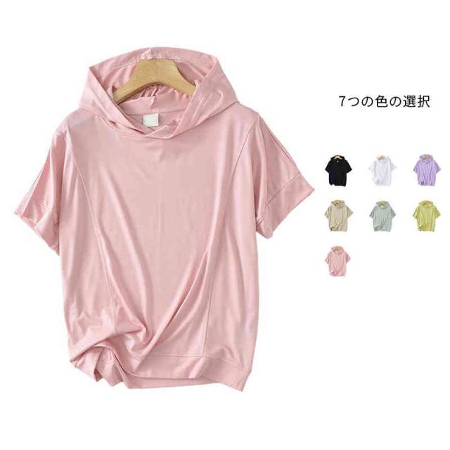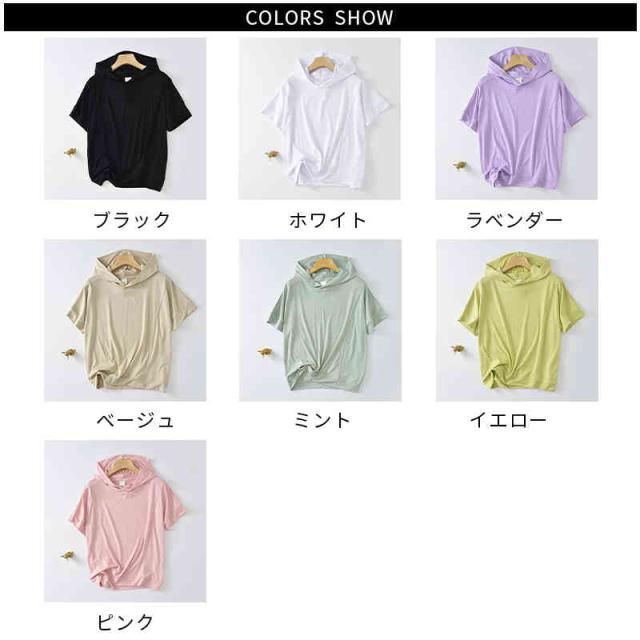 送料無料 サマーパーカー レディース 半袖パーカー プルオーバー トップス 夏 夏パーカー シンプル ブラック ホワイト ラベンダー ベージュ ミント イエロー ピンク