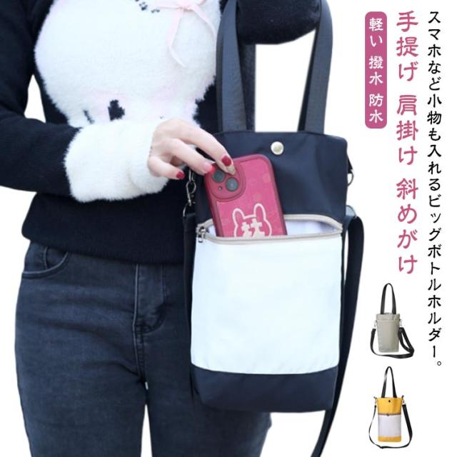ペットボトル ショルダーバッグ 水筒カバー ファスナーポケット付き スマホや傘も収納可能 保冷 ボトルケース 斜めがけ 保温 ボトルホルダー 水筒ケース 肩掛け ドリンク 持ち運び 軽い 撥水 防水
