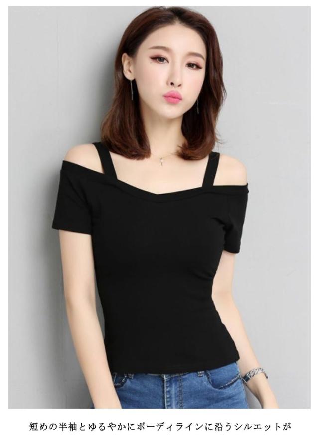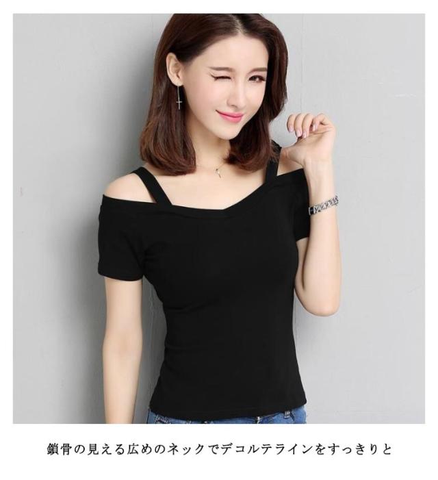 黒 tシャツ トップス コンパクト 肩出し 半袖 オフショルダー レディース 肩開き 夏服 白 オフショル半袖Tシャツ