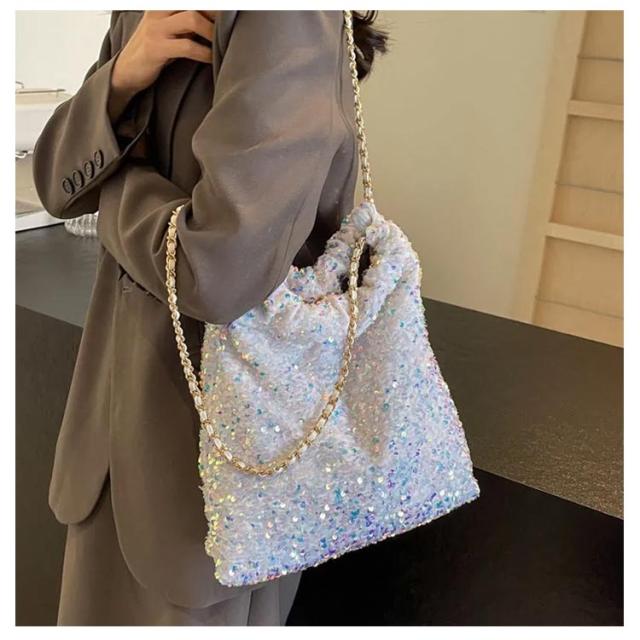 2WAY ショルダー バッグ スパンコール 2way 巾着バッグ コンパクト ベージュ 巾着バッグ スパンコールバッグ スパンコール ショルダーバッグ パーティーバッグ ブラック シルバー 彩色 スパンコール レディース きらきら オケージョン 光沢 軽量