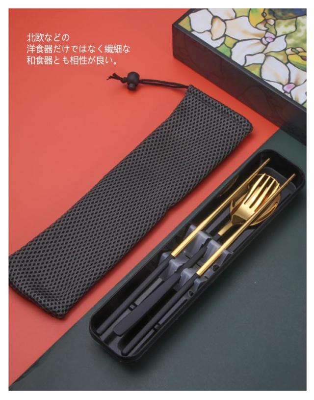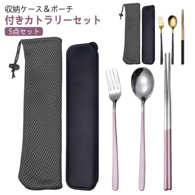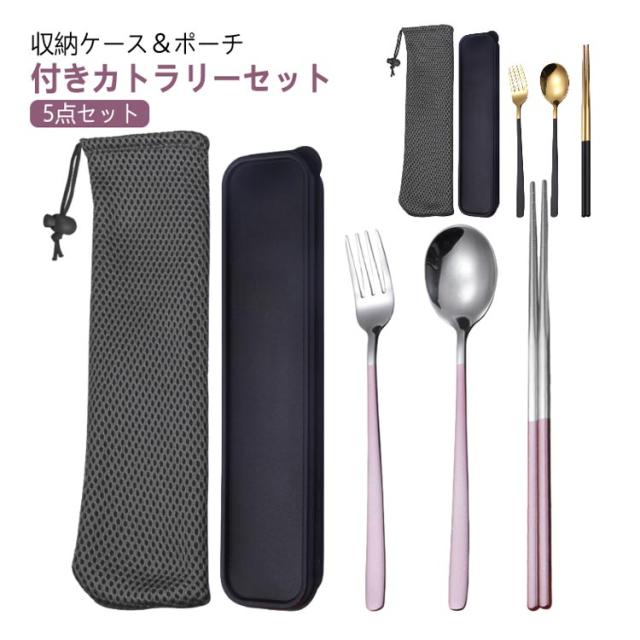 カトラリーセット 5点セット スプーン フォーク お箸 北欧 おしゃれ シンプル ステンレス カトラリー 食器 セット キッチン 雑貨 アウトドア キャンプ 通勤 弁当用 レジャー 食器 携帯便利 収納簡単 華奢 高級感 収納ケース 収納ポーチ付き