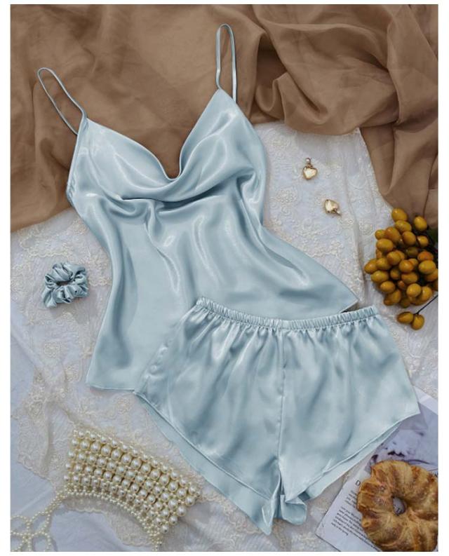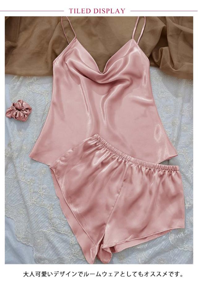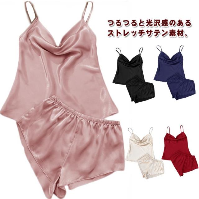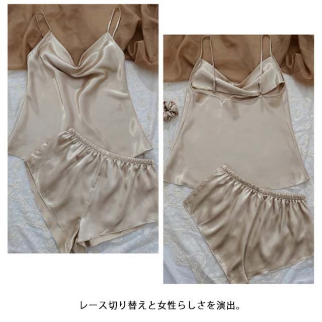 パジャマ インナー ルームウエア サテン パジャマ 涼しい ナイトウェア 部屋着 無地 ランジェリー キャミソール ショートパンツ 上下セット 薄手 女性 可愛い 寝巻き ナイトウェア 楽ちん