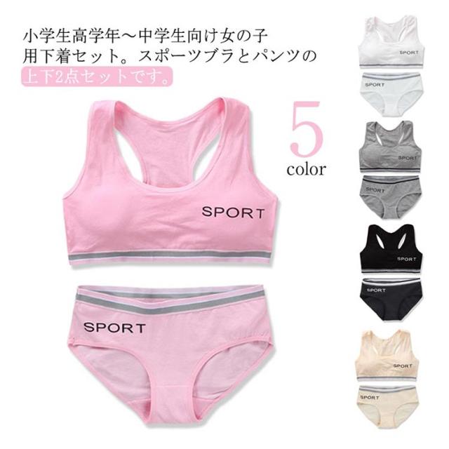 カップ付き 中学生 キッズ 小学生 女の子 下着セット セット 無地 ショーツ ジュニア向け ジュニア向け 子供用下着 ブラジャー インナー 英字ロゴ 肌着 子供 アンダーウェア スポブラ ショーツ パンツ 上下セット