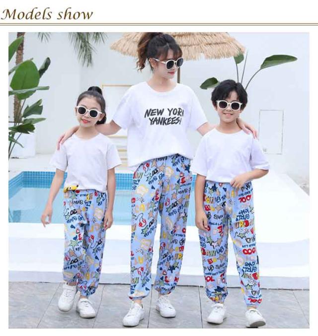 キッズ服 子供服 長ズボン ロングパンツ 薄い 虫よけパンツ 涼しい ボトムス 女の子 男の子 春 夏 綿 コットン ボーイズ ガールズ おそろい オシャレ 大人 リンクコーデ 親子 パジャマ ママ メンズ レディース 90 100 110 120 130 140 150cm S-3XL