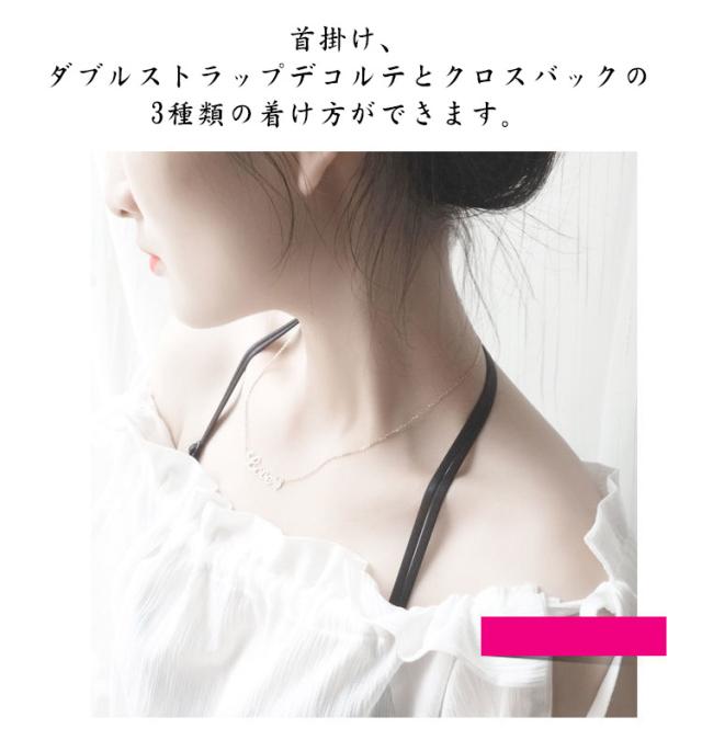 | バッククロスがセクシーでおしゃれなブラストラップ。 首掛け、ダブルストラップデコルテとクロスバックの3種類の着け方ができます。 大きめフックで引っ掛けやすく、サイズ調整もできます◎ 普段使いだけでなく、休日や海辺でも大活躍です。 | |