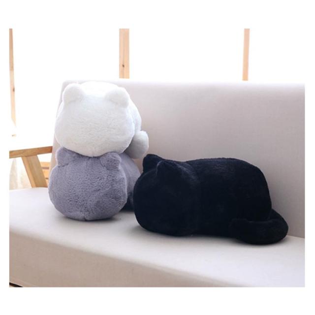 | ねこ好きさんへのプレゼントに! ふわふわまんまるでかわいい、猫ちゃんのかたちのクッション リアルな猫ちゃんサイズでお膝にのせてもよし、リラックスタイムに枕にしても◎ ご自宅のソファーやベッドルーム、抱きかかえておしゃべりしたりするのにちょうどいい大きさです。 落ち着いた色合いなので会社などでも違和感なくお使い頂けます。 柔らかネコちゃんに癒されて下さいね。 | |