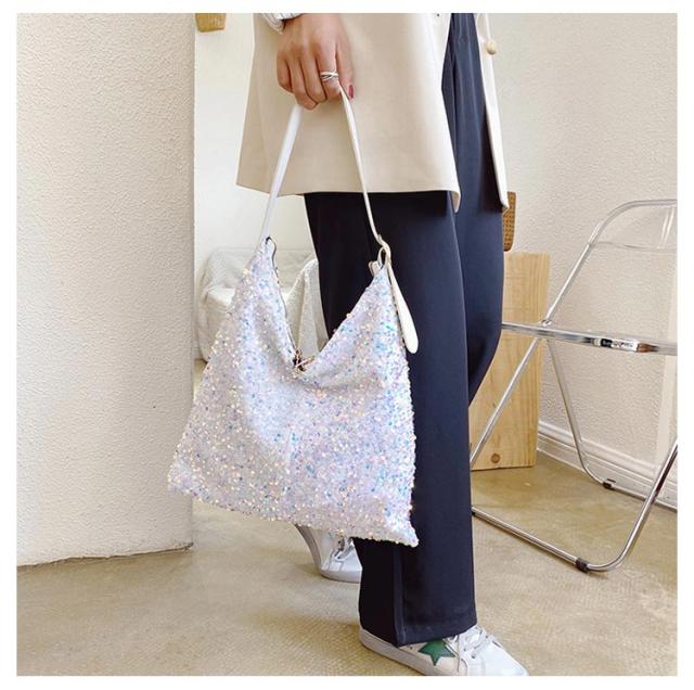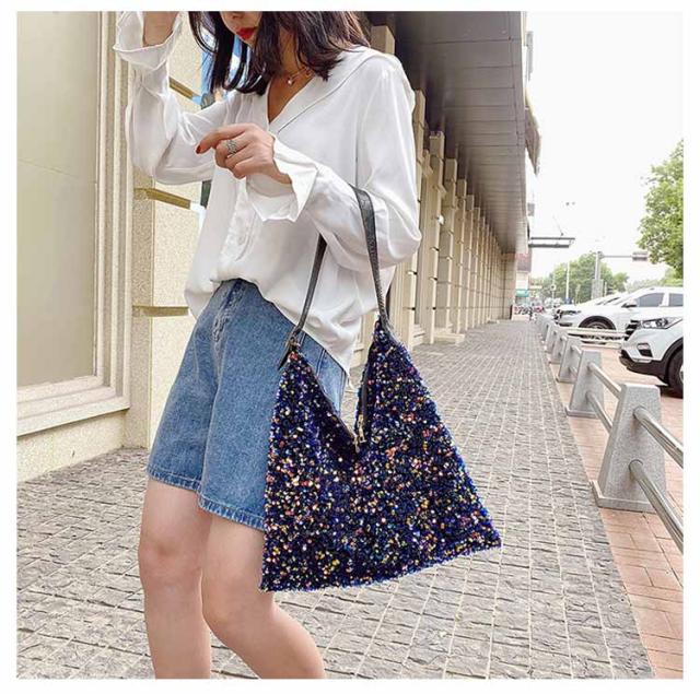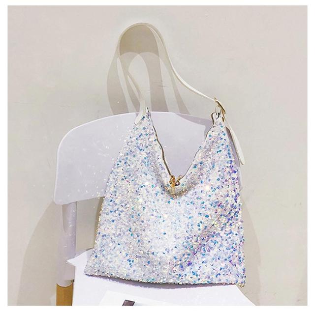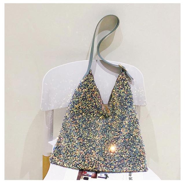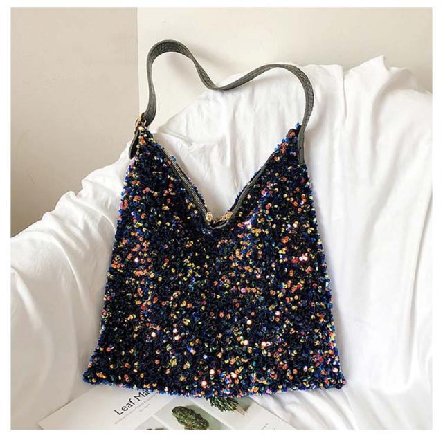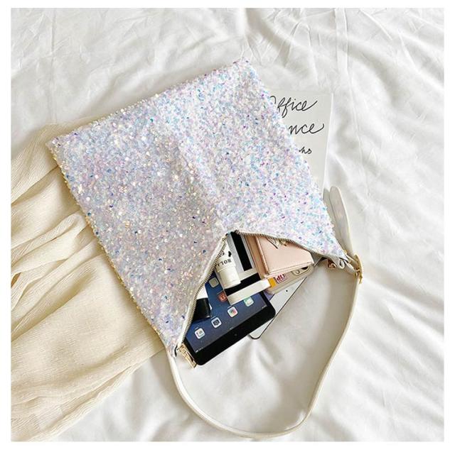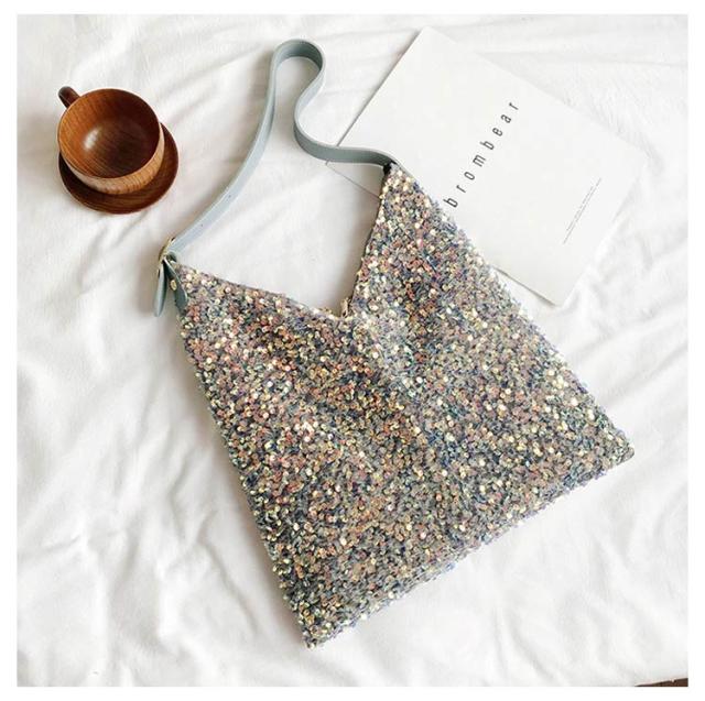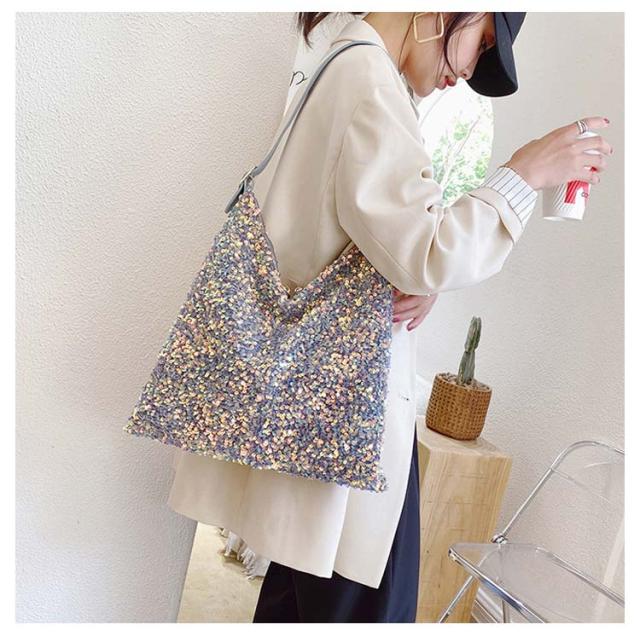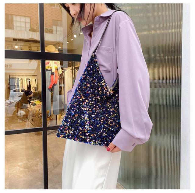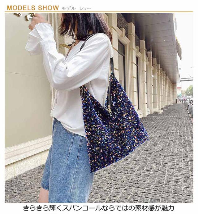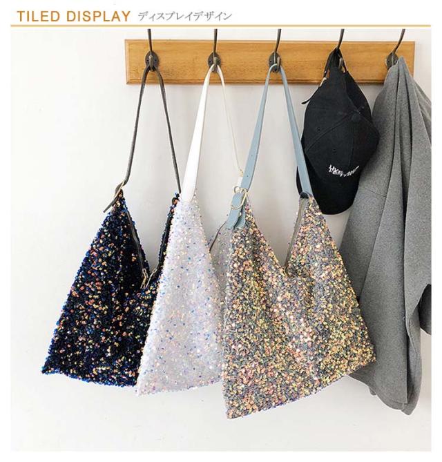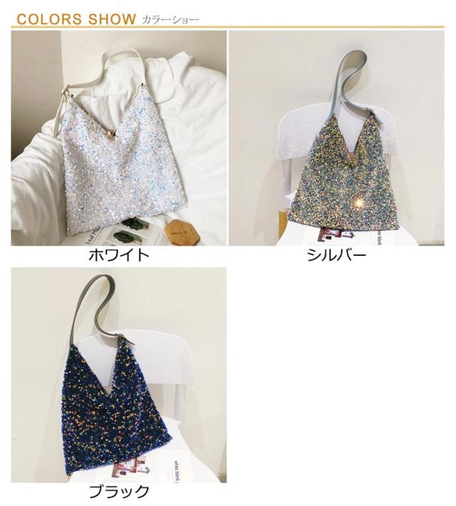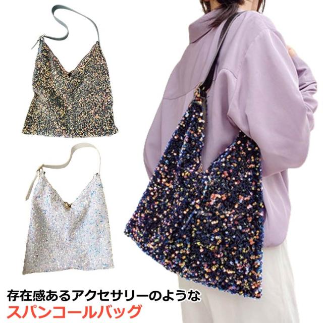 | 存在感あるアクセサリーのようなスパンコールバッグ きらきら輝くスパンコールならではの素材感が魅力 持ち手の長さ調節可能 | |