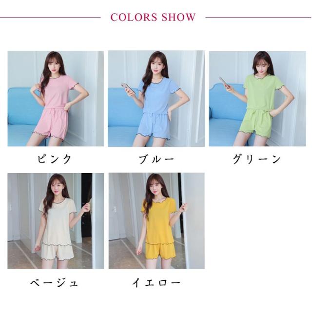 | 可愛いフリルデザインのパジャマです。 ウエストゴムですのでゆるっとリラックスできます。 軽くてコンパクトなデザインですので収納場所にも困りません。 開き具合がちょうどいいクルーネック半袖のセットアップです。 締め付け感が少ないショートボトムで動きやすいです。 ゆったりシルエットでリラックスタイムを格上げしてくれる、パジャマ上下セット。 | |