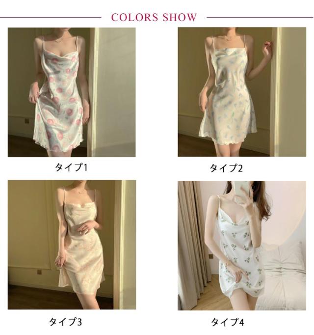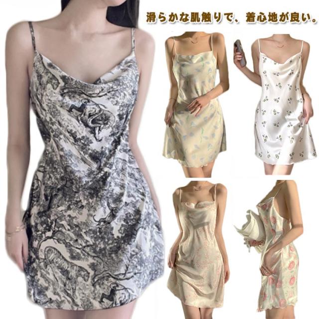 かわいい キャミソール レディース ランジェリー ワンピ シルク風パジャマ インナー 下着 キャミ 女性 ナイトウェア 秋 サテン 部屋着 春 夏 ルームウェア 冬 寝巻き リラックス エレガント 大人 可愛い